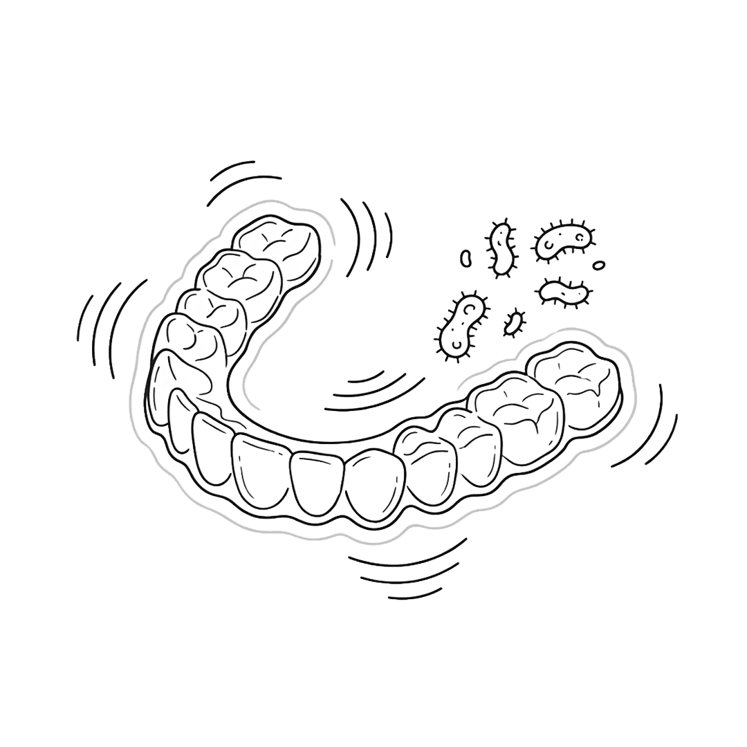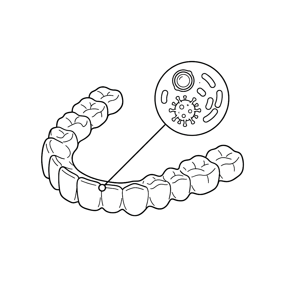 Een bacteriebelaste aligner die leidt tot een slechte mondhygiëne.