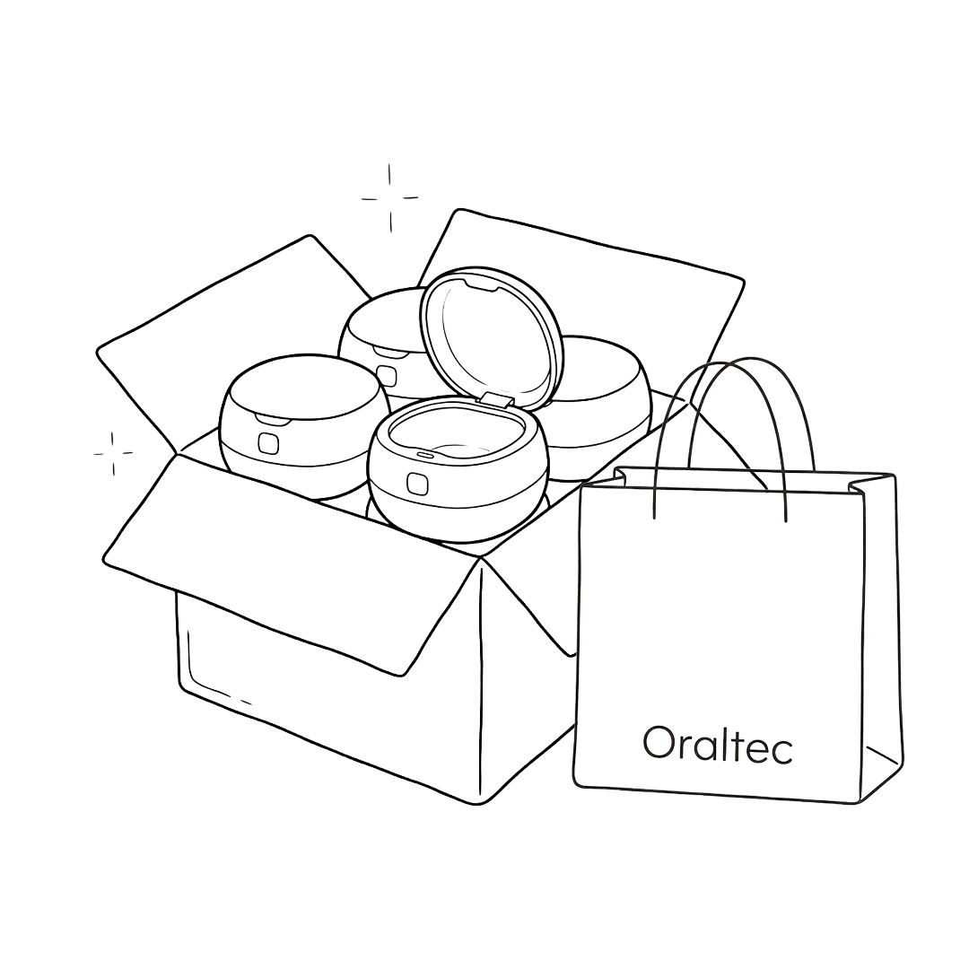 Oraltec is geschikt voor de reiniging van aligners, retainers, kunstgebitten, mondbeschermers en andere uitneembare orale hulpmiddelen.